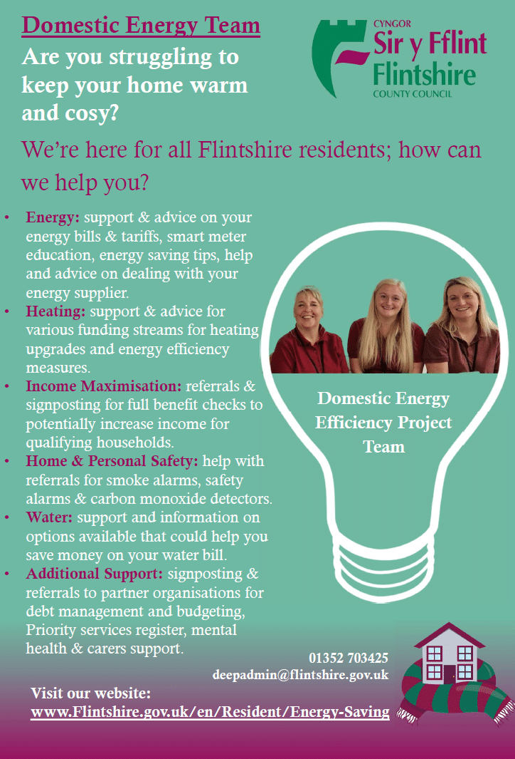 On Friday 30 January 2026, Flintshire County Council’s Domestic Energy Efficiency Team will be joining the monthly coffee morning at the Village Centre.